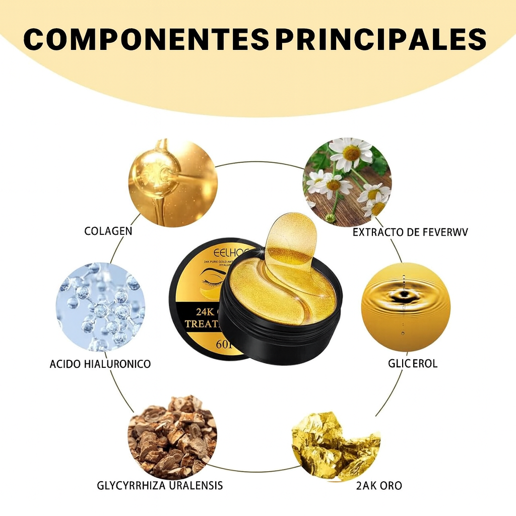 Estos parches combinan ingredientes de alta calidad con el lujo del oro, ofreciendo un efecto visible en pocas aplicaciones. La piel queda más suave, hidratada y luminosa, y las líneas de expresión se reducen de manera natural. Sin duda, un producto que marca la diferencia en el cuidado de la mirada